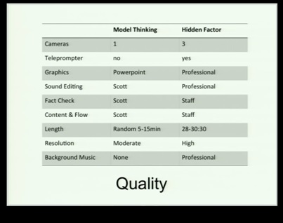 I would like to share with you Scott’s insights on his experience on making this online course contrasting it with the making of his online course ‘The hidden Factor’. This last one was professionally done in a studio and he called ‘Model Thinking’: my garage band online course : – )